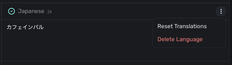 To remove or reset a language, click on the three dotts button next to the language: